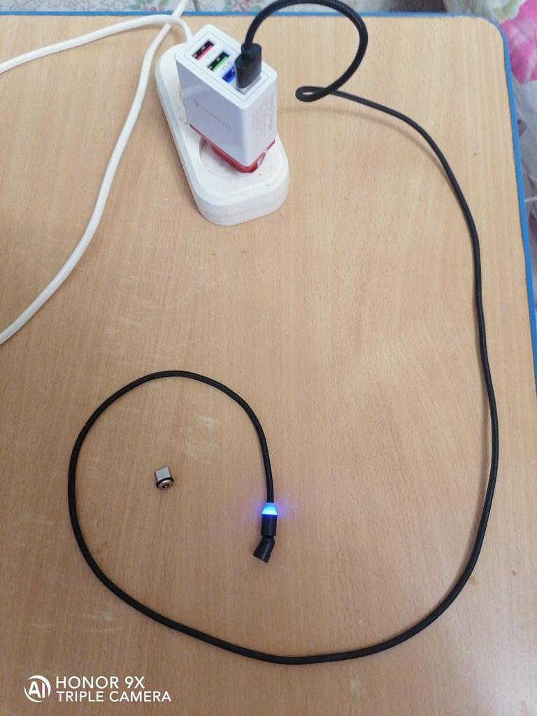 Заказ от 18.02.23, получен 29.03.23, шёл около 1,5 месяца. В посылке 2 вращающихся магнитных кабеля с типом С и Микро на 2 разных телефона от разных производителей. Магнитный вращающийся кабель Fonken 540°, чёрный, тип miсro USB только для зарядки, ток 2,4А, т.е. быстрой зарядки нет, с подсветкой, 213 рублей, взяла для телефона Xonor 8X. Всё подошло, заряжает. Кабель 1 метр, нейлоновый, должен быть прочный, но тоньше, чем ожидала, думала диаметр будет больше. Посмотрим сколько прослужит.