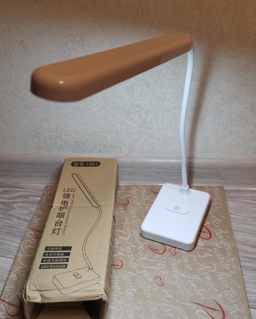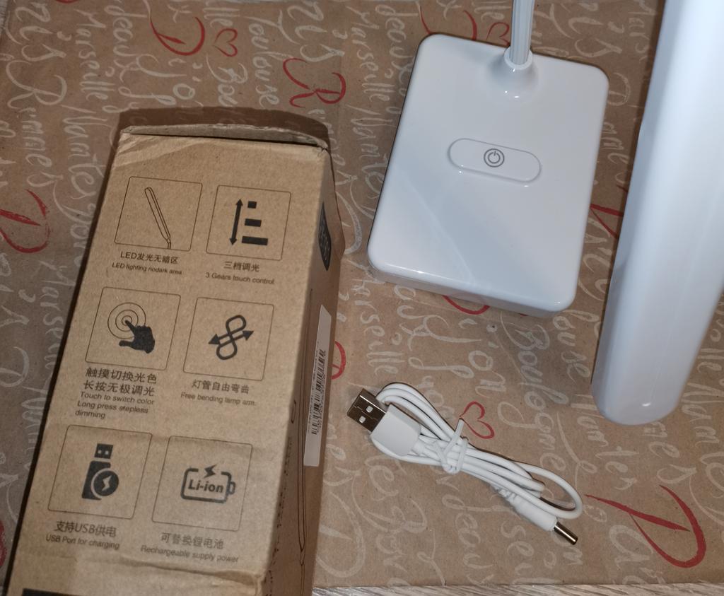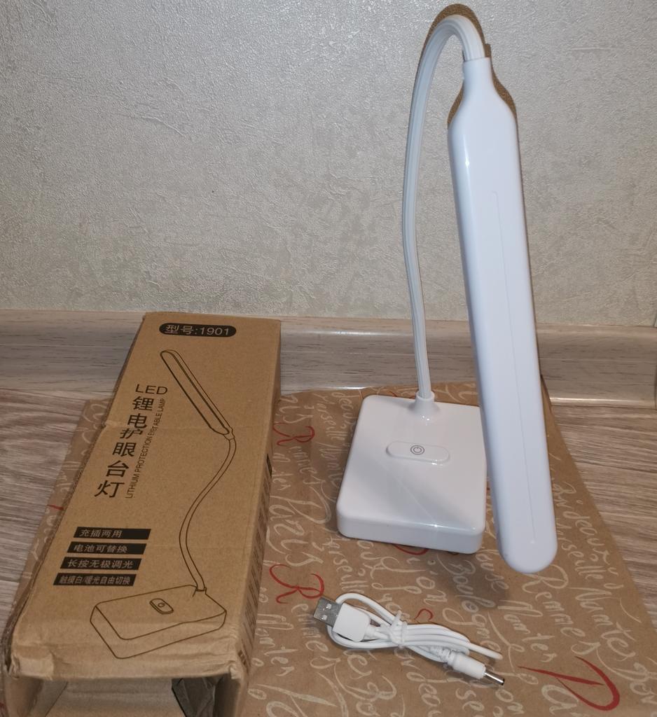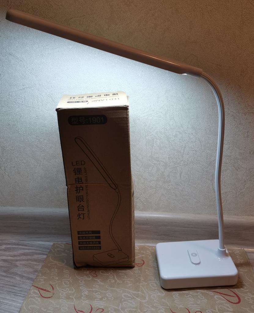 Лампа сама по себе хорошая, только гнущаяся ножка выглядит старомодно, на коробке и корпусе иероглифы, походу она не заряжается, когда наклоняет близко к столу, переваливается, исправляю чем-то утяжеленным, наверное буду раскручивать и в корпус приклею кусок металла. Светит классно, сенсор работает не по всей площади выпуклости, а только на рисунке. Сам же рисунок немного сыпется и кажется, что вот вот сотрётся. На бликах видны царапины на корпусе. Первое время, при первых сгинаниях - хрустела.