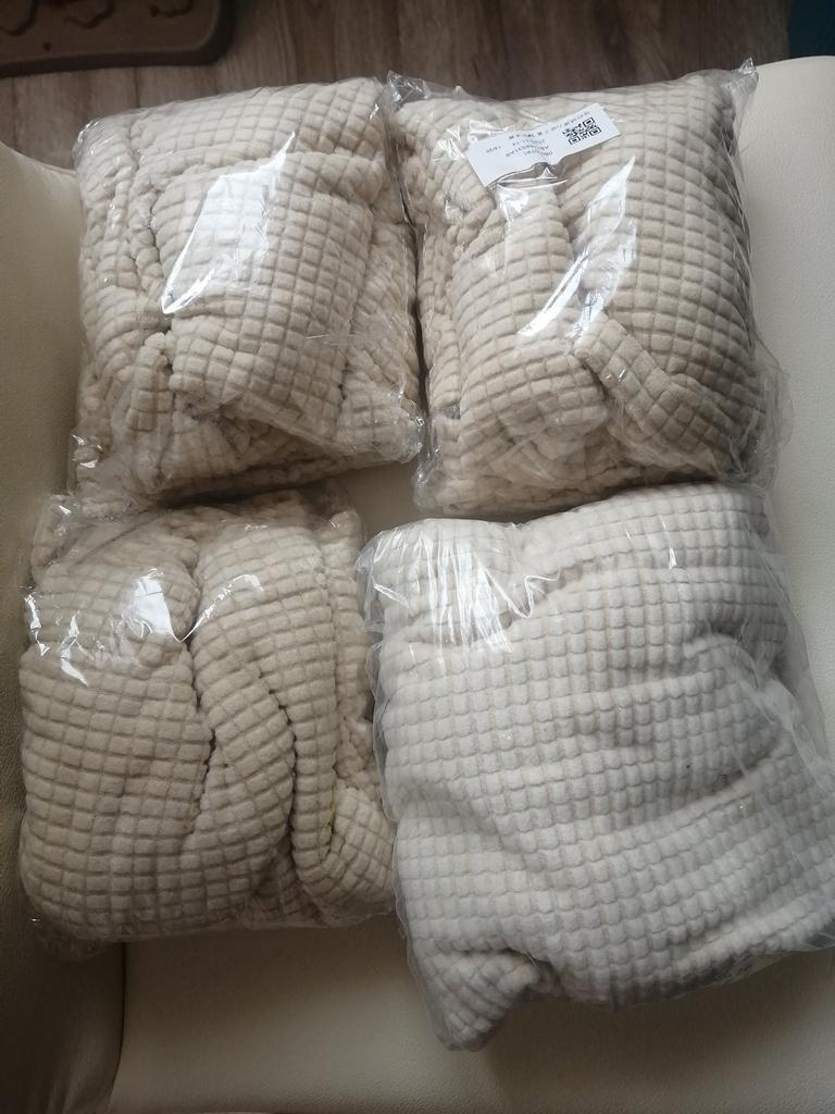 Чехлы пришли в течении двух недель, считаю, что не долго шли. Упаковка мягкая, все целое, каждый чехол было отдельно упакован, в полиэтилен, потом все 4 вместе в одной упаковке. Чехлы не сильно плотные, тянуться очень хорошо, с рефленым рисунком в виде квадратиков, резинка проошита по периметру чехла, держит хорошо. Чехлы Единственное цвет одного чехла чуть светлее остальных трех, но не сильно заметно. Подошли отлично на все 4 стула. Нитки не торчать, запаха нет. Достойные!