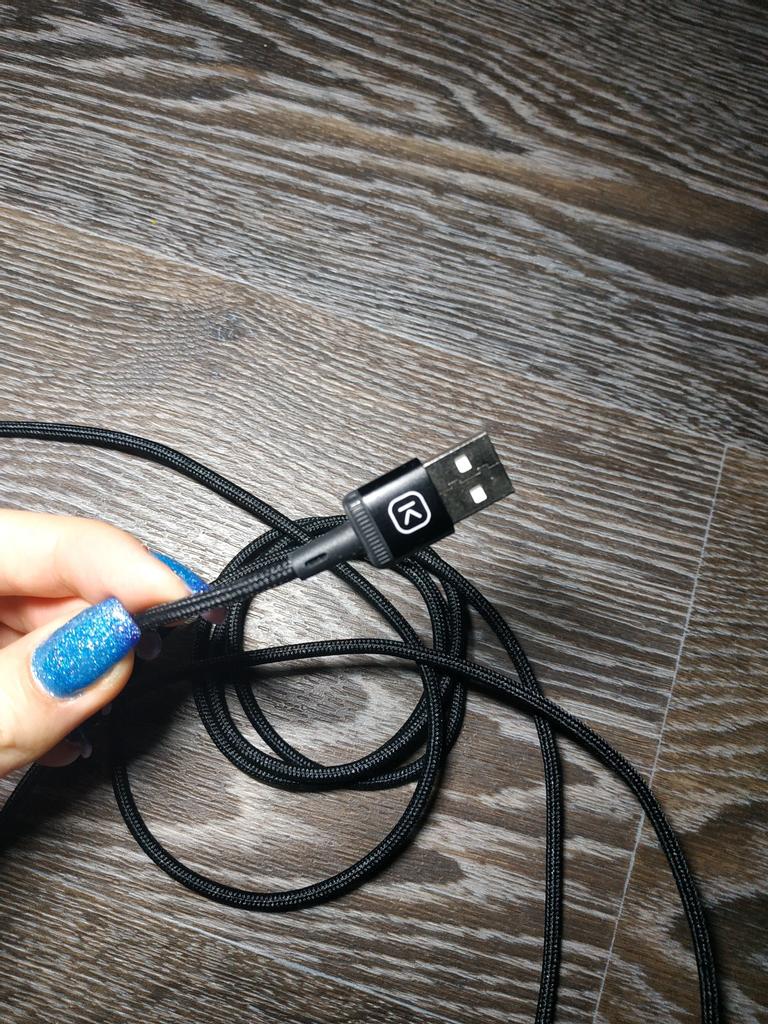 Зарядный кабель с магнитной головкой-штекером. Все кабели зарядки сначала входят в порт телефона очень плотно, но по прошествии времени начинают шататься, вихляться и вылетать из гнезда. Здесь очень удобно - можно оставить штекер в порте телефона, что бы потом только примагничивать вторую часть головки штекера во время зарядки. Кабель поддерживает быструю зарядку. Он с цветной оплёткой и выглядит очень манерно. В общем - идея мне понравилась. Заказывала сразу два таких кабеля, их объединили в одну посылку и посылка приехала достаточно быстро. Продавцу спасибо. Хороший зарядный кабель - рекомендую.