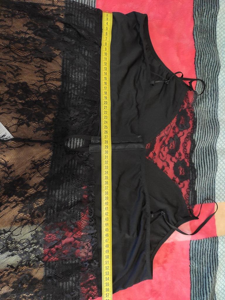Ну что ж, открыла посмотрела пощупала - понравилось( кружево не хлипкое выглядит хорошо, на ощупь мягкое, к телу приятное, швы хорошие). Но промахнулась с размером и сильно. Перед этим брала другого плана ночнушку таких же размеров 6xl, и еле в неё влезла, за грудь вообще молчу, там она явно не предусмотрена, исходя из опыта брала размер такой же, потому что писали что по факту идёт больше. Здесь 5 xl я влетела и вылетела с дугой стороны ОГ 106. На фото видно сколько материала ещё остаётся. Девочки, эта ночнушка минимум идёт ОГ 114 и это не учитывая что ткань тянется. Кстати подкладка тянется мягкая и эластичная. А вот сам фасон не клеш как на фото, она прямая, учтите. Вывод ночнушку мне понравилась ушью и все, зато убка точно будет клеш😁.