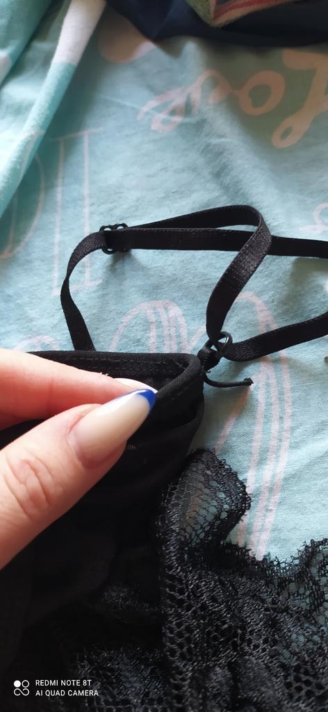 Заказ пришел быстро, очень ждала, очень хрупкий, сеточка, приятная ткань, немного большой пришел. А теперь о плохом, вот трусами не довольна, если размер берут большой то и трусики должны соответствовать размеру, не трусы, а 3 верёвки, и всë, на трусы ткани пожалели, 3 из 10, фото добавлю позже, добавляю коментарий, попробовала застигнуты это ужас, швы не совпадают, криво порезали, это ужас, не рекомендую, я злая, он мне так понравился, на себе застегнуть нереально, ужас, требую возврата, а по поводу лямок, я а шоке, ну что нормально пришить нельзя, руки вообще из правильного места стоят??? Трусы что тоже не могли нормально пошить. Это треш Я в шоке с продавцов, как такое можно продавать, или отсылать, требую возврата