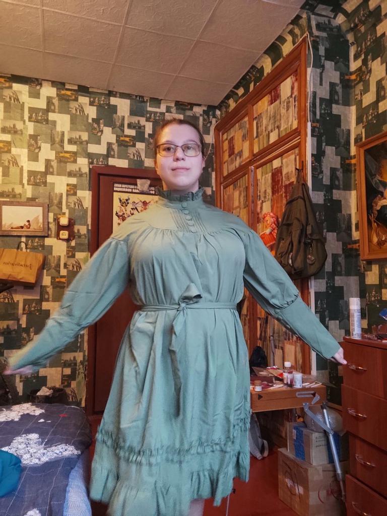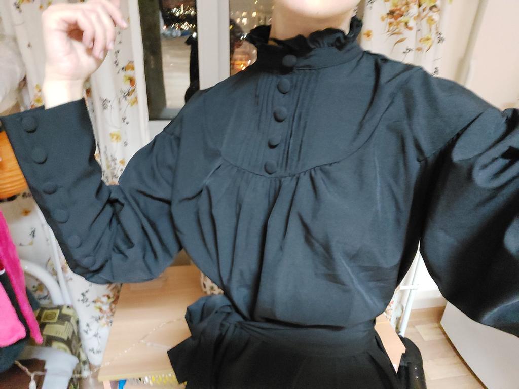 Заказ пришёл достаточно быстро! Платье неплохое, особенно для своей цены. Ставлю 4, но справедливости ради хочу сказать, что ожидала как раз товар на четвёрочку-четвёрочку с половиной. Кое-где торчат ниточки, что не страшно и легко можно убрать. Чёрный цвет мог бы быть немного глубже и выглядеть лучше на фото, но мы с вами понимаем, что для этого нужна более дорогая и плотная ткань. Плюс я очень худая, и даже самый маленький размер на мне совсем не маленький, но это уже мои проблемы. Плюсы: очень красивое, с классными пуговичками и рюшками. Пояс и свободный крой платья позволяет регулировать предмет одежды по вашей собственной талии. Удобное, ничего не колется, к платью вся на свете пыль и грязь не липнет. Стильненько, я довольна. Если вас беспокоит, как будет выглядеть чёрный цвет, то лучше его не заказывайте, а возьмите платье другого цвета: кремовое в самый раз. Всех поцеловала💋