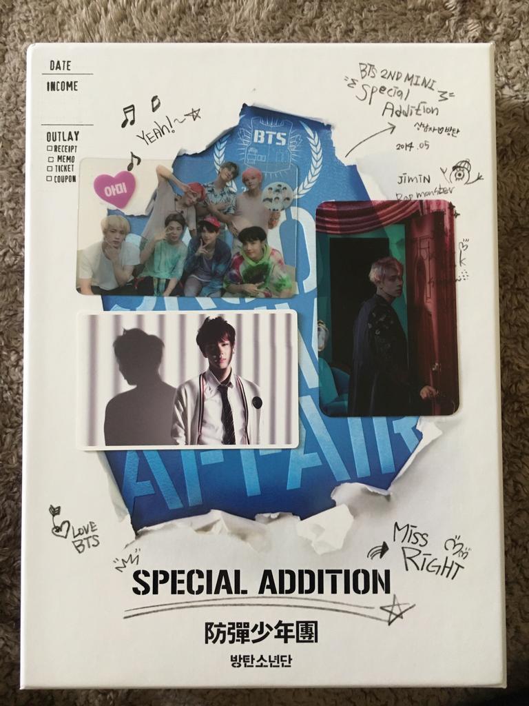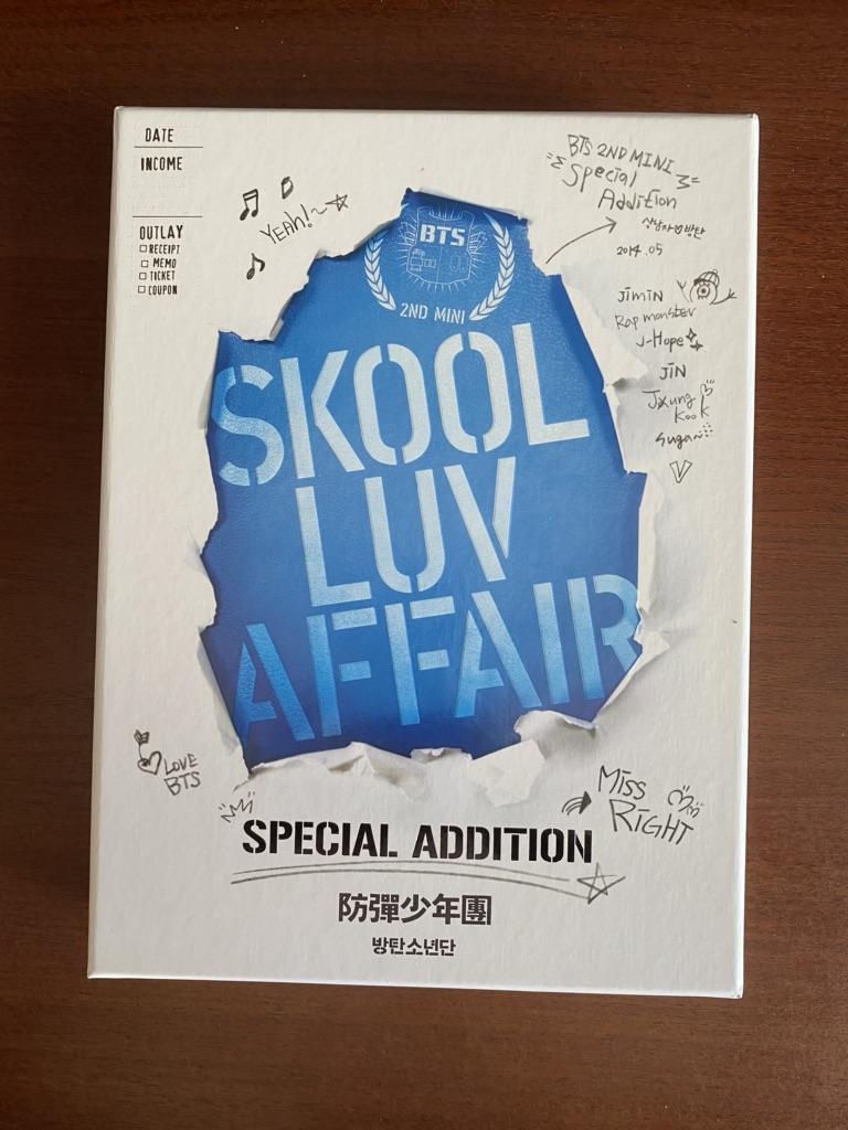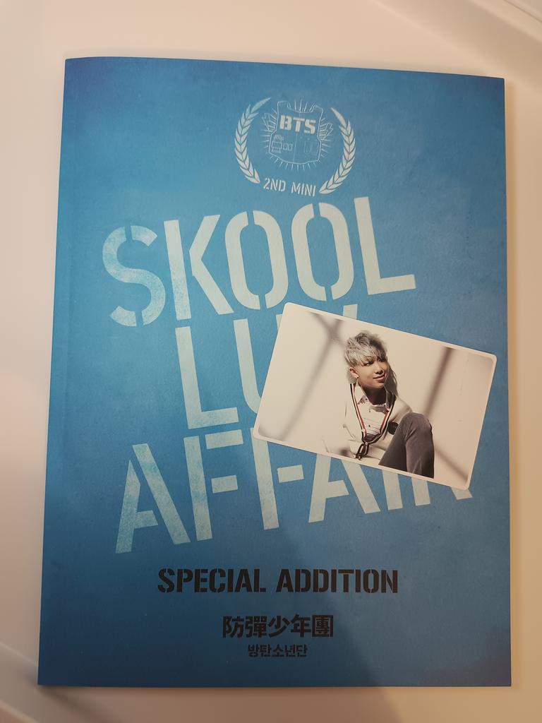 Skool Luv Affair (специальное дополнение) пришёл за месяц в изрядно потрёпанной коробке. Наличие нескольких слоёв пупырки спасло содержимое посылки. Оформление коробки: дизайн и все эти надписи, как на школьной парте - приятно смотреть и щупать) Фотобук с очень хорошим качеством печати, но листать лучше с осторожностью. У меня вылетело несколько страниц. Помимо диска с песнями, ещё два с дополнительным материалом. Карточка попалась с солнечным Хосоком, не менее солнечный Шуга в подарочек, большое спасибо! Этот магазин рекомендую всегда, надёжный 👍