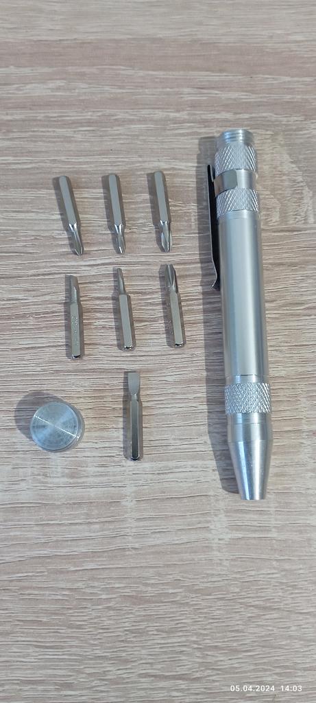 Получила многофункциональный набор отвёрток 8 в 1, футляр в виде ручки, серебристого цвета, металлический, тяжеленький. Очень компактный, можно даже носить с собой, много места не занимает, но мало ли в какой ситуации может пригодиться, чтобы не бегать искать, будет все под рукой. Спасибо большое продавцу и Джуму за качественный товар. Рекомендую. Посылка в Украину шла больше месяца.