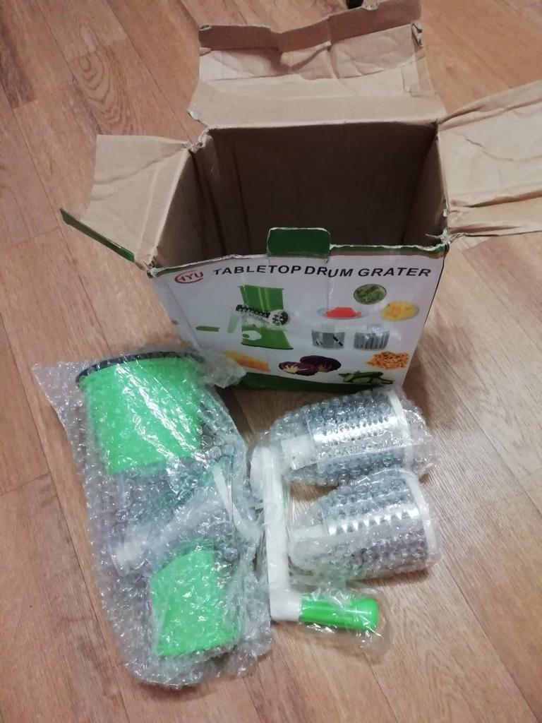 Огромное спасибо за быструю доставку!Посылку получила на 24-й день,она на нашей почте пролежала пять дней,так бы было меньше.Терка пришла в коробке,коробка немного помялась,но она была завернута в пупырку,все детали целы,качество хорошее,немного присоска не цепляется,но этоне страшно,можно придержать.Главное,что она молит орехи,первое,что я прокрутила,моется легко,собирается,разбирается быстро.Короче товаром довольна!Желаю продавцу удачной торговли и благодарю за быструю доставку.