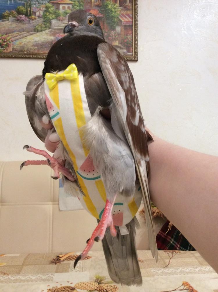 На нашу пташечку, породы обычный голубь, подошёл по размеру идеально. Внутрь можно приклеивать обычную прокладку ежедневку и периодически менять её. Единственный минус, когда птичка долго ходит в памперсе, воспаляется анус от загрязнения и невозможности освободится от экскрементов самостоятельно. Поэтому одеваю редко по необходимости. Сама моделька памперса удобная, хорошо сшито, аккуратно обработаны швы. Рекомендую