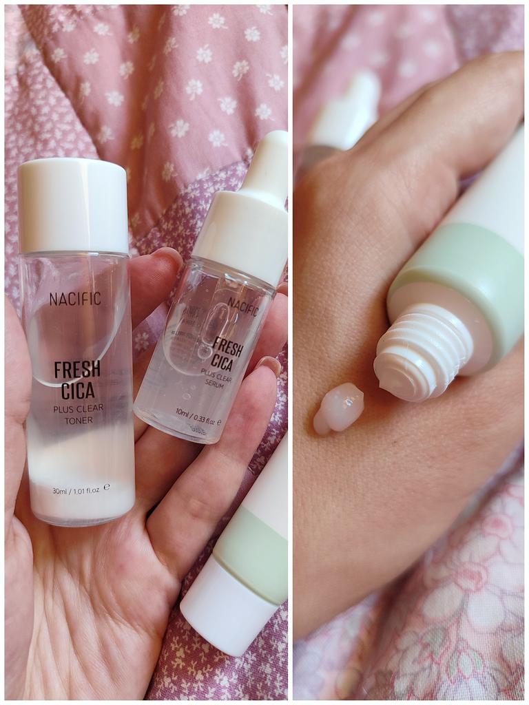 Мини набор NACIFIC для проблемной кожи 🔥👍❤️ Набор мне очень нравится, до этого брала два больших набора, пользуюсь постоянно, а теперь решила взять в поездку мини вариант 😍 В набор входит, пенка, тонер, сыворотка и крем. Сначала я умываюсь пенкой, затем тонер, его нужно взболтать и нанести на лицо. Затем наношу сыворотку и последний этап - крем. Все средства впитываются мгновенно. Кожа у меня слишком сухая, заметила, что начала шелушится, видимо увлажнения не хватает, наношу вместо крема из набора, свой увлажняющий крем. ❤️ А крем из набора это что-то волшебное, я точечно наношу его на любой прыщ и на утро всё чисто. А если прыщ сильный, то нужно наносить несколько дней. У мужа огромный фурункул вылез на лице, всё сильно распухло, он мазал им неделю несколько раз в день и всё рассосалось. Но главное не выдавливать его, а мазать, если давить прыщик, а потом намазать, то чуда не случится. После нанесения всех средств из набора есть охлаждающий эффект, нет липкости и неприятных ощущений. Подойдёт для жирной кожи с высыпаниями или без. Этой серией пользуюсь давно, мне нравится, новых высыпаний стало меньше, тон лица стал лучше, пятышки от прыщей менее заметные, красные подкожники стали не красные и не больно при надавливании, Я честно говоря удивлена. Пенка для умывания Гипоаллергенная, эффективно очищает кожу. Хорошо пенится. Тонер Тонер двухфазный - состоит из жидкости и белой пудры, перед применением необходимо встряхнуть флакон, чтобы они перемешались, становясь однородной жидкостью молочного цвета. Имеет приятный травяной аромат. Расход экономичный. Подходит для проблемной кожи. Тонер (содержащаяся в нем пудра) не забивает поры, успокаивает кожу и воспаления, матирует, уменьшает выработку кожного сала. После применения всего набора кожа очень мягкая и нежная на ощупь, увлажненная. Сыворотка Сыворотка мутноватая, гелеобразной консистенции, имеет приятный травяной аромат. Расход средний. Подходит для проблемной кожи. Крышка представляет собой пипетку, которой удобно набирать продукт и в нужном количестве дозировать его. Средства из набора отлично увлажняют кожу, она мягкая и бархатная на ощупь. Успокаивает воспаления и раздражение. Поры не забивает. Крем Обеспечивает питание и интенсивный уход за проблемной кожей. Крем с 3 активными компонентами Centella Asiatica, которые высоко концентрированы липосомным методом, который обеспечивает эффективные ингредиенты и лечит проблемную кожу. Данный продукт прошел некомедогенный клинический тест для кожи ACNE. Содержит комплекс Greencica, благодаря которому эффективен при уходе за повреждениями и успокаивает кожу. Объём: - Тоник: 30 мл. - Сыворотка: 10 мл. - Крем: 20 мл. - Очищающая пенка: 30 мл. Обладателям проблемной кожи, рекомендую попробовать данный набор 👍 Доставка около трёх недель. Трек-номер отслеживался.