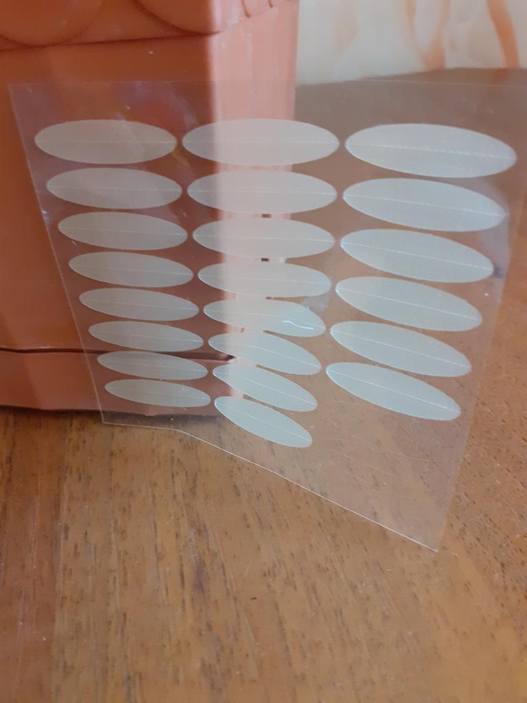 Попробовала приклеить прямо на тени, приклеились отлично. Не угадала чуть с местом расположения, но веко уже не нависает, совсем другой вид. Спасибо Джуму и продавцу, очень рекомендую.