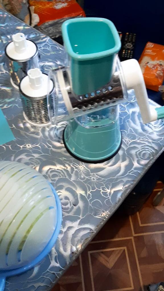 17.09.21г сделала заказ на механическую овощерезку синего цвета с тремя насадками. Получила на 09.11.21г. Тёрочка классная, насадки- ножи очень острые. Работает по принципу мясорубки в советские времена. В основном думаю в ней можно перетирать варёные овощи, яйца, сыр, яблоки. С сырой морковкой, свёклой, я так думаю она вряд-ли справиться, слишком хрупкая. Но я и брала её для варёных овощей, чтобы побыстрому делать салаты. Овощерезку рекомендую. Спасибо продавцу и Joom. Дополняю: овощерка отличная. Испытала её когда делала салаты на день рождения. Приклеилась к столу на мертво и пока я перетирала на ней овощи (картофель, морковь, свёклу...) ниразу не отпала как не странно от стола. Перетёрла овощи на :5". Так что рекомендую овощерезку однозначно.