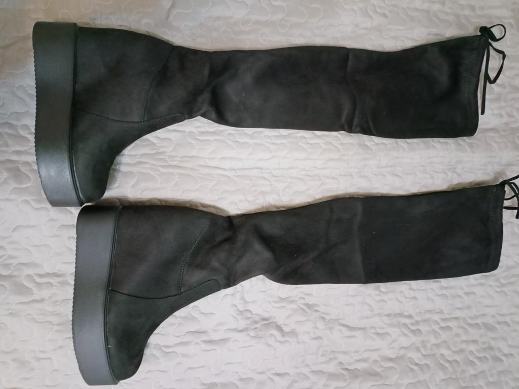 Не понравилось: соотношение цена/качество- Ощущение такое, что эти сапоги сделаны из бумаги. Замшезаменитель некрасивый, выглядит дёшево. Изнутри обшивка из тонкого флиса. Внутренний каблук-платформа живёт сам по себе-приклеен только к подошве. Запах клея ужасный( надеюсь выветрится). Один сапог на пару 3 мм больше другого по подошве и ложится свободнее на ноге. Клей виден. На 23,3 см как раз. Подойдёт и на 23,5 см. Ткань на голенище не тянется, но на мои не худенькие ножки натянула -таки. Размер икры 36, выше колена 41 см Это точно не зимний вариант, не снежный и не дождливый. Поносив сапоги какое-то время, хочется добавить : пока не развалились. В носке удобные, лёгкие, в подъёме мне подходят. Поэтому, несмотря на неприятное впечатление я добавляю одну звезду. Температурный режим: выдержали -7° с гольфами. Не скользят.