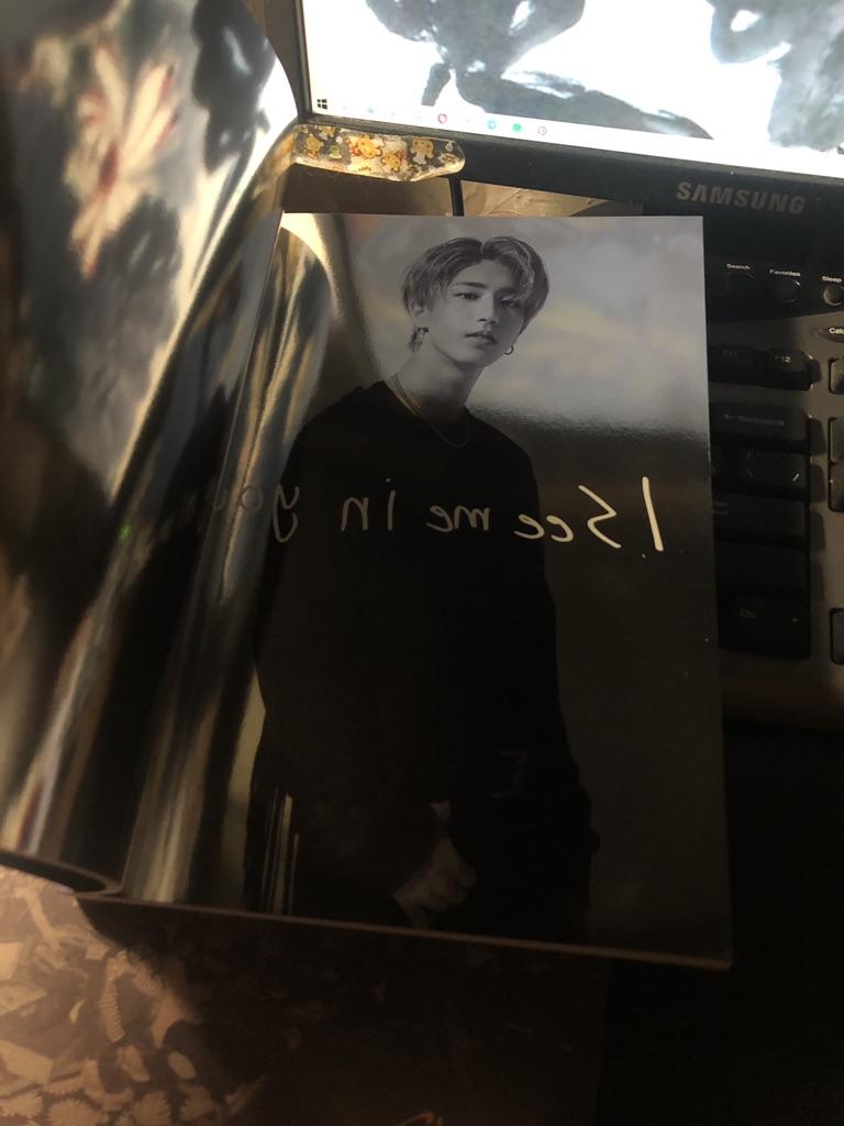 Ох, и наклоунили меня в этот раз опять альбомы, благо развороты попались с биасами наконец-то, впервые за всё альбомы. Альбомы заказывала повторно, полики попались идентичные, как и в предыдущих альбомах, уже боялась, что и карты повторятся, но нет. Очень радовалась карте Хана, безумно её хотела. Интересно, что полики в этот раз глянцевые, а не матовые, как были в прошлых альбомах. Продавец положил две неофициальные карты с Ханом и Хенджином и бланки для регистрации альбомов. Если кто-нибудь хочет карту Ликса, то могу обменять на карты Хенджина, Минхо или Хана из этого альбома, пишите) Юнитку Чанбин-Сынмин также обменяю на юнитку с Хенджином, Минхо или Ханом)