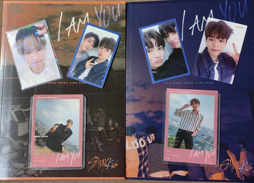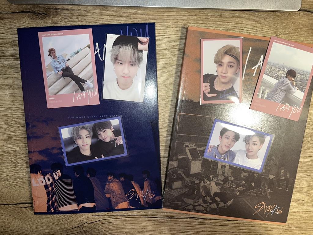 Альбомы пришли достаточно быстро, где-то за 20 дней. Заказывала к Новому году, но у меня на руках они уже были где-то в середине декабря. Упаковка хорошая (коробка, пупырка – по стандарту, короче), повреждений нет (разве что некоторые карты немного слиплись, но это проблема всех старых альбомов). Фотографии в I am you – это что-то с чем-то. Очень приятный глазу ретро-стиль и сам концепт лично для меня создаёт тёплую, искреннюю атмосферу. Не менее классные и фотографии с зеркалами (и очень милые рисуночки от самих стреев в одной из версий). В первом альбоме на разворотке попался Минхо, во второй – Чонин (он во второй версии меня прямо полюбил, ахах). Были также и милые подарочки от шопа! Stray kids world domination 🌠