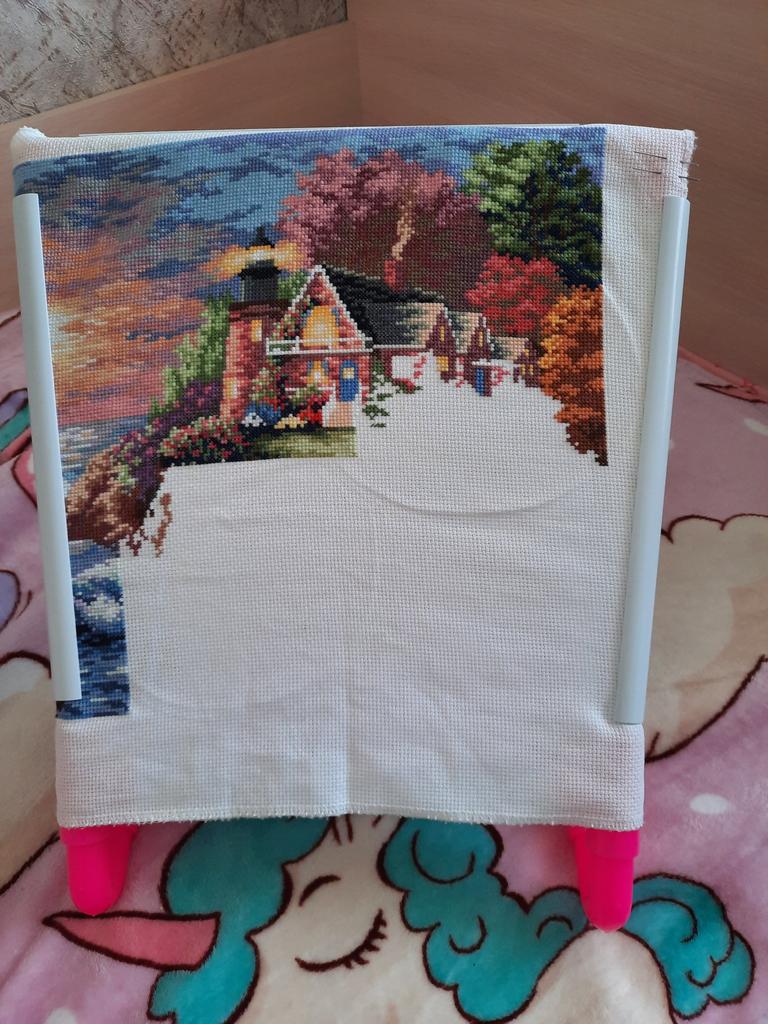 Я так долго ждала эту подставку и вот когда пришли эти трубки-трубки, я немного опешила... Что же с ними делать, подумала я и уже расстроилась, что видимо не то пришло. Но муж пришел на помощь, собрал мне всё и вот я довольная и счастливая вышиваю))). Правда, сначала нужно к ним привыкнуть, но уже всё хорошо!