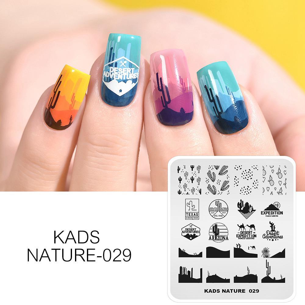 kads Шаблоны для штамповки ногтей, пластина для дизайна ногтей, штамп с изображением природы, трафарет с надпечаткой, модный дизайн, штамповка