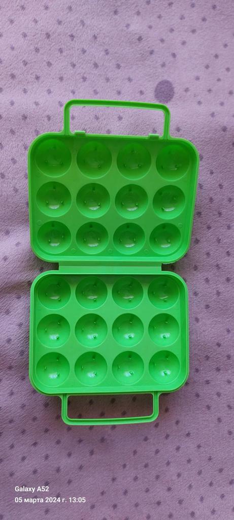 Контейнер для яиц..🤗 Безусловно всем известно, что домашние яйца гораздо полезнее, чем с магазина..🙂 Мы часто покупаем именно домашние.. И всегда ходим то с ведерком 🤣,то с ячейками из-под магазинных яиц 😁. Это очень не удобно.. И на Джум мне понравился контейнер.. ☘Доставка 2 месяца.. Очень долго конечно.. ☘Пластик качественный.. Без запаха.. ☘Цвет приятный.. ☘Ячейки на 12 яйц.. Можно выбрать на меньшее количество.. ☘Ручка закрывается защелкиванием.. ☘Удобно держать в руке.. Удобно нести.. ☘Все остаётся целое.. Ни одно яйцо точно не разобьётся.. Рекомендую ..🤗 Отлично!👍