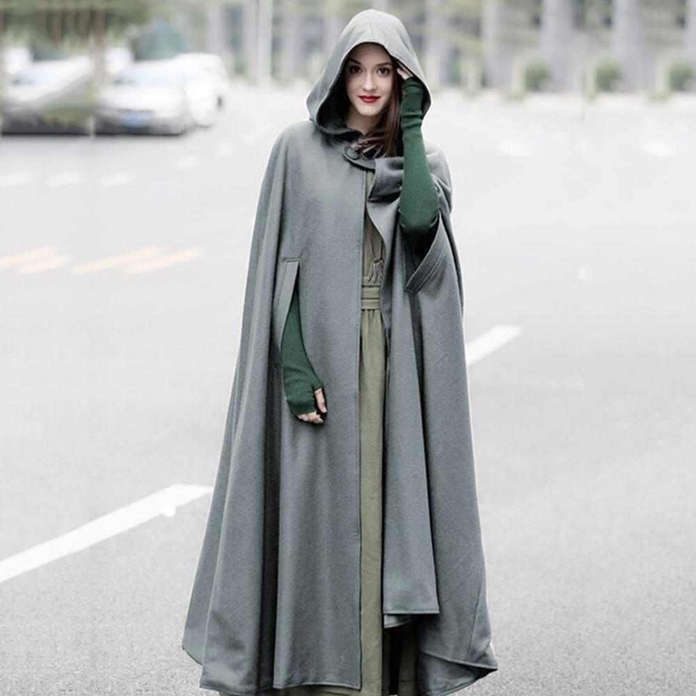 Повседневный женский зимний плащ с капюшоном без рукавов и пуговицами, длинная накидка, костюм, верхняя одежда для косплея