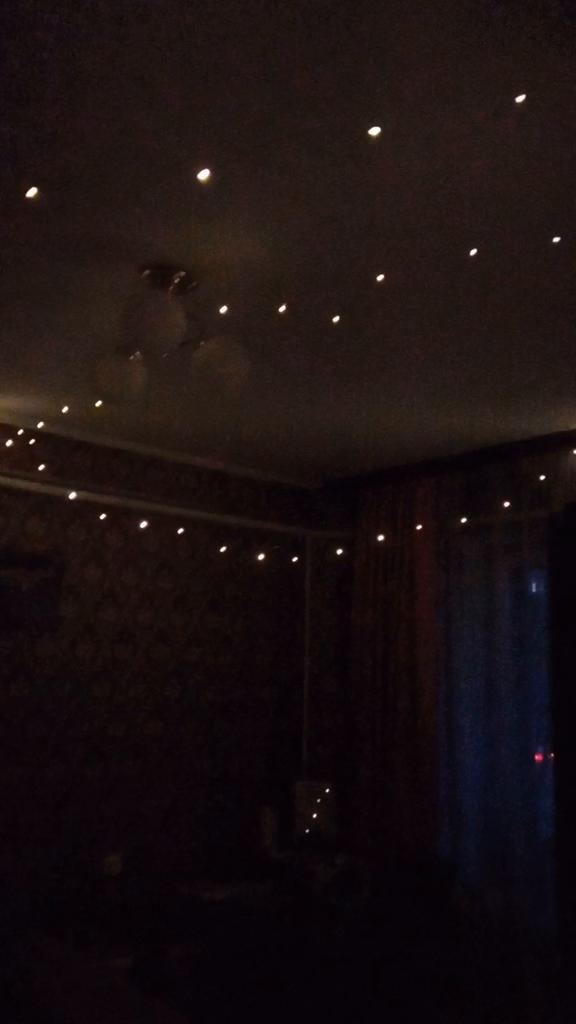Классная гирлянда на тонкой еэмалированой прополоке, диоды в виде маленьких капель органично слиты с проводом. Работает от зарядки телефона на 0,5А, потребление тока при постоянном горении 200 мА. Минус в том что при подключенной зарядке г а по умолчанию отключена и включать мерцание нужно в ручную с пульта или через кнопку на приемнике