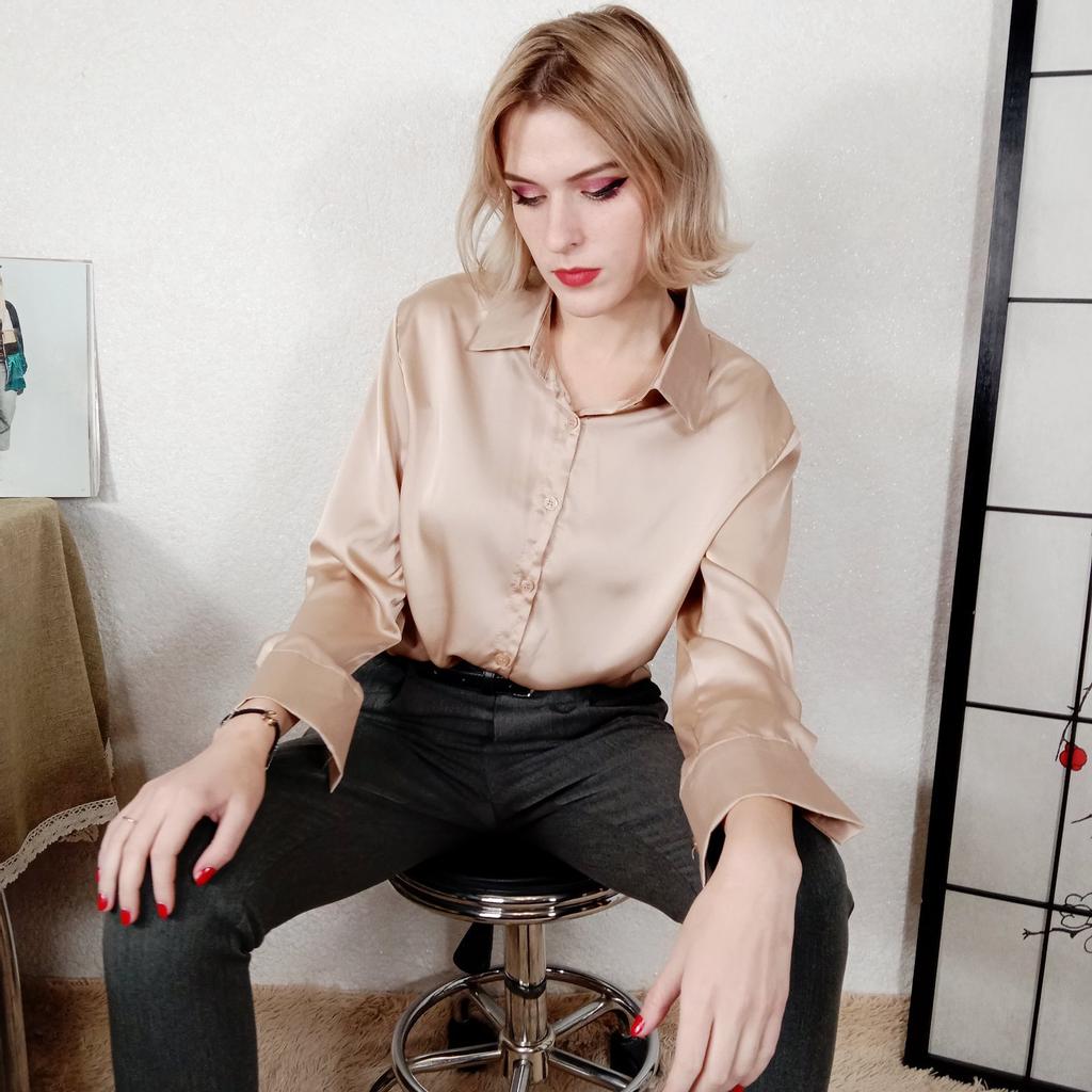 Женская блуза из искусственного шелка с отложным воротником — купить товар онлайн с бесплатной доставкой по всему миру!