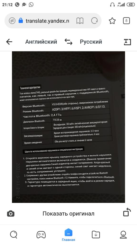 Всем привет! 🤗💝 Урааа! Дождалась наушнички! Доставка была очень долгой, больше чем 1.5 мес. с 25.03 - по 11.05, трек отслеживался не полностью, но до самого конца! 📫 Тестирую наушники: ✔️ музыка и аудиокниги в них огонь🔥 ❌ как гарнитура не очень👎, в них слышно хорошо, а собеседник слышит тебя чуть с опозданием, звук буд-то уплывает. Почитала, вроде сам бокс держит зарядку 8 часов, а наушники 2-3 часа без подзарядки из бокса, пришли заряженые)👍 и они сенсорные) 👍 Внешний вид: ⏺️Бокс: матовый пластик, на магнитной защелке, светится только красным, на корпусе есть кнопка вкл/выкл. Наушники в посадочных местах бокса примагничиваются. ⏺️Наушник: прорезиненный, мигает двумя цветами(красный/синий), удобно фиксируется в ухе, имеет три звуковых выхода, сенсор расположен на верхней части наушниках (двух наушников). ⏺️Сенсор: нужно приловчиться к нему, иногда🎙️ выводит на экран гугл помошник(аудио запрос). 📰🙃Инструкцию перевела с онлайн переводчика по фото, думаю пригодится многим, ну и как управлять сенсором тоже картинку добавила! 📱🔋Индикатор уровня зарядки наушников, многие пишут появляется, на экране телефона на значке наушников🔋, но у меня такой информации на Андройде и телефоне Xiaomi, не появилось, возможно в настройках нужно настроить!) Заряжать нужно☝️не более 70мин.,как написано в инструкции. Подключаем: через Bluetooth 📲, настройки, поиск нового устройства, выбираем i12, и наслаждаемся музыкой! 🤗🎶 К покупке рекомендую! Ставьте лайк❤️, если отзыв полезен и подписывайтесь, ещё много новых обзоров впереди! 😘💕
