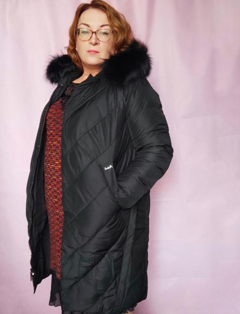 Пуховик ASTRID. Плюссайз! Это уже второй пуховик из этого магазина; первый я заказывала в прошлом году, и всю зиму в нем проходила (я вам его показывала, серый такой. Приходите на трансляцию 26.10, покажу оба, и ещё курточку😋) Этот пуховик стоит дороже и выглядит более элегантно. К тому же мех у него настоящий, и возможно даже лиса. Вообще, девочки, если хотите носить вещь не один год, и чтобы она была сшита хорошо, обратите внимание на Астрид, у них оч хорошее качество. Фасоны, опять же, современные. Да и размерный ряд широкий. Фасон пуховика прямой, длина как я люблю. Рукава на мой рост хорошей длины, и там ещё под ними есть эластичные манжеты- ветер не будет задувать. Молния крепкая, в цвет пуховика. Поверх застегиваются кнопки. Капюшон достаточно глубокий и теплый. Боковые карманы глубокие, удобные. На них есть металлические черные надписи Astrid. На спине посередине тоже есть такая надпись. Внутри на груди есть потайной кармашек. Пуховик простеган не поперечными полосами, а ромбами. Это зрительно стройнит. Да, я заказывала 5 XL на свои ОГ 120, ОТ 114, ОБ 135, рост у меня 178.