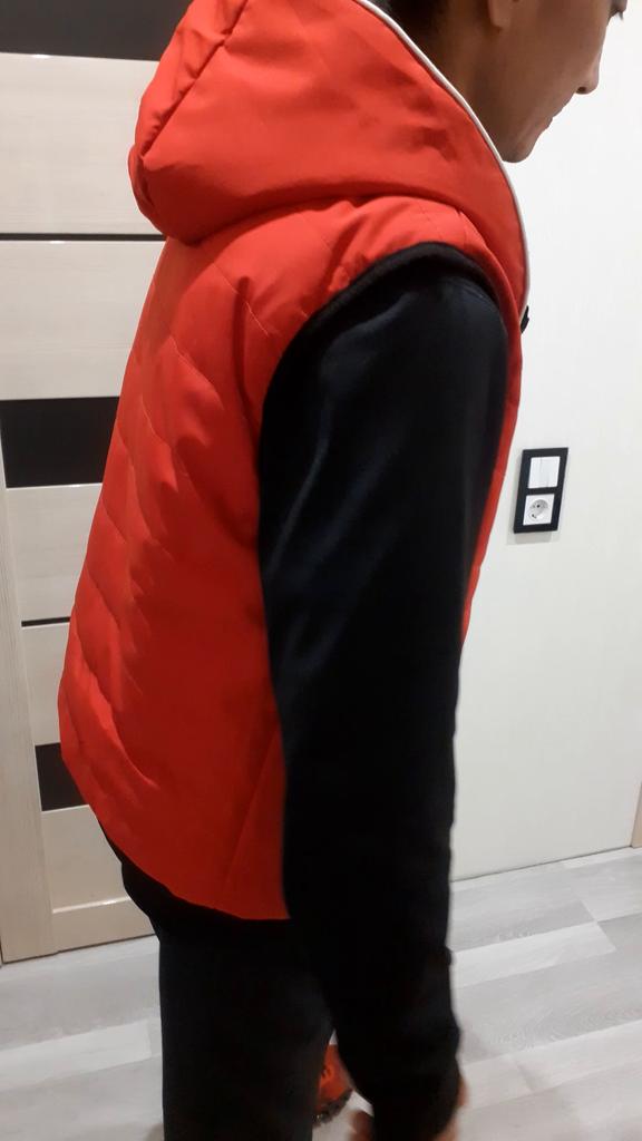 Хороший жилет с капюшоном, хороший дизайн. Жилет можно носить на обе стороны. Приятное сочетание цветов - бордо и темного-синего. Отшита аккуратно, швы ровные, узлы заправлены, нитки не торчат. Хорошая непромокаемая двухсторонняя молния. Утеплитель внутри распределен равномерно, стежка ровная. Заказывала мужу, для занятий спортом на улице в прохладную погоду. Жилетка вполне может использоваться не только для занятий спортом, но и как второй слой, поверх осенней куртки или свитера в повседневных городских комплектах. Жилет приехал в сборной посылке вместе с другими заказами. Был упакован в пакет с молнией и в транспортировочный пакет. Продавцу и Джум спасибо. Жилет порадовал, удобная вещь - рекомендую.