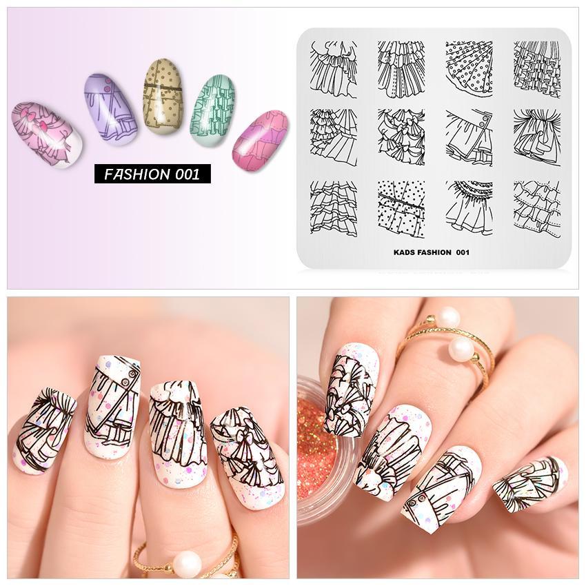 kads Пластины для штамповки ногтей Fashion 001 Design Skirt Lace Image Stamp Templates for Nail Art Stencil for Nails Manicure Tool