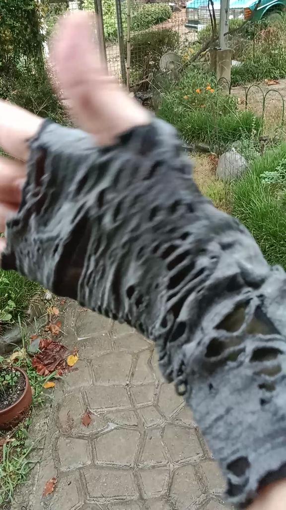 Выглядит очень красиво. Честно, думала она будут мешковатые и крупнее, но так даже лучше. Есть дырка специально для пальца. Качество похоже на копроновые колготы (черная ткань), остаются стрелки. Ну ничего, это тоже считаю не минусом, так как ткань немного плотнее копронки. Рекомендую! Но на большие руки, думаю что не пойдут. У меня рост 158, вес 48, ручка худая.