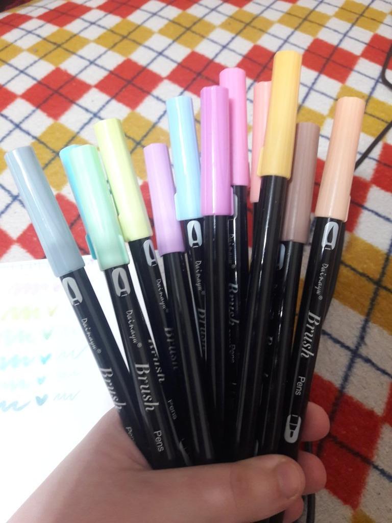Думала будут чуть пастельнее, но не важно. Калиграфию/ леттеринг ими делать наврятли удасться(наконечник чуть жесеоват)