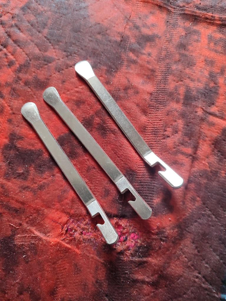 Отвратительное качество изготовления. Облой, хвосты на всех трёх загнуты под разными углами, зацепы для спицы бесполезны. Может несколько раз справятся со своей работой, если камеру не порвут. Не рекомендую, берите нормальные пластиковые
