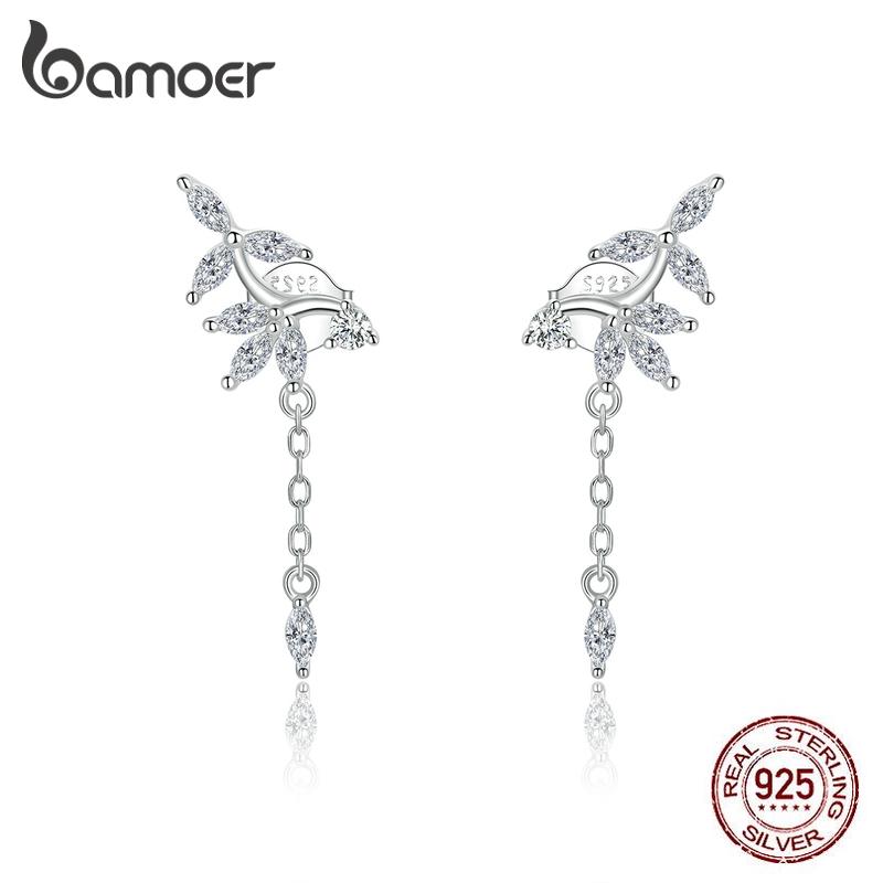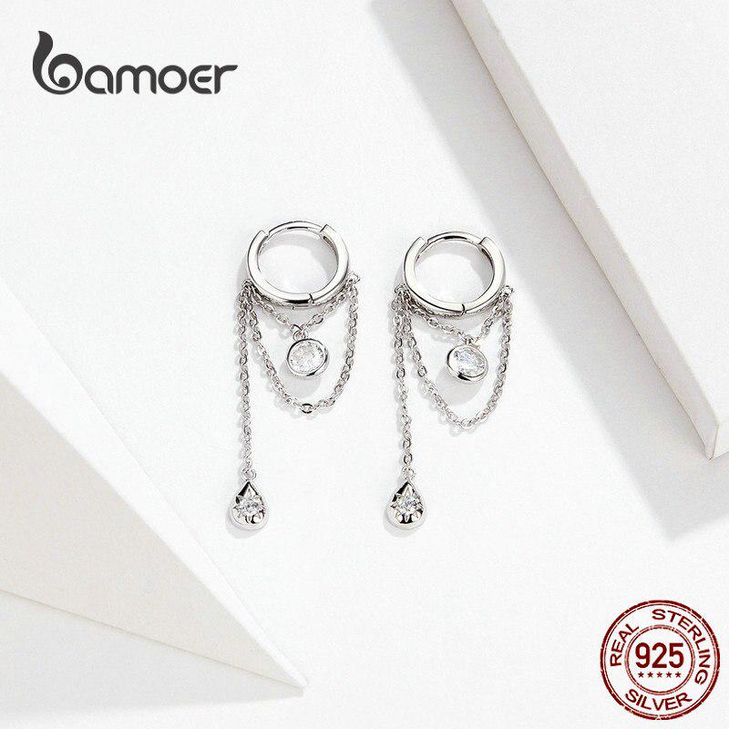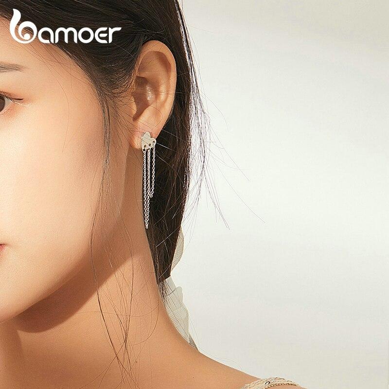 BAMOER Аутентичные элегантные серьги с подвесками из стерлингового серебра 925 пробы на длинной цепочке с кисточками для женщин