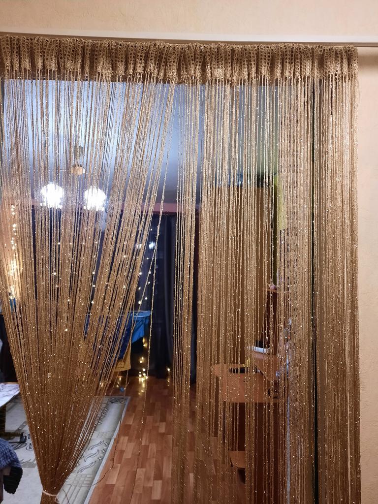 Отвратительное качество. Пока рассматривала - вся юбка была в блестящей пыли. В нити вплетен люрекс, расстояние между нитями 1см. Ширина и толщина нити 1, 5 мм на 1 мм. Что этим изделием можно эадекорировать, разделить и т. п.? М инимум в четыре раза нитей должно быть больше. 2 разные шторы были упакованы в один пакетик без каких либо этикеток Это явно не фабричная, не заводская, а кустарная вещь. Возможно кто-то получил и настоящую, судя по отзывам. Жалко напрасных ожиданий и денег за такое "блестящее решето".