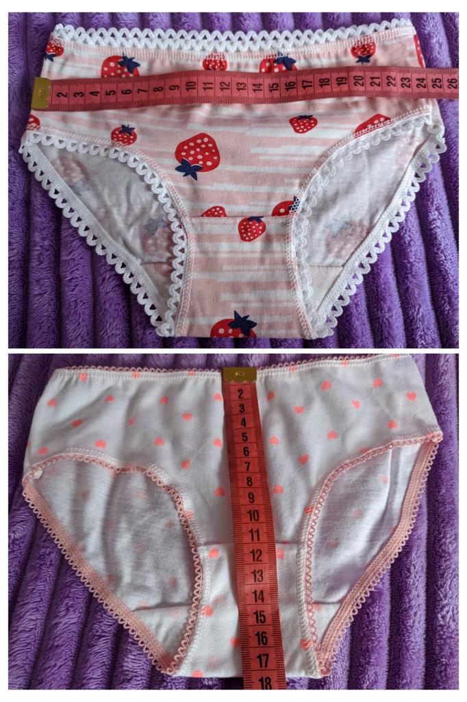Обзор для всех, у кого есть дочки. 🥰 Товар по этой ссылке я заказывала четыре раза. Трусики замечательные, с очень удобной посадкой. Хлопок 100%, с хлопковой же ластовицей. Очень красивые расцветки! Этот набор - для моей племянницы. Несмотря на то, что в комплекте аж 12 штук, расцветки не повторились. В предыдущих заказах единичные повторы были, но расцветки все красивые. Резиночки тоже разные, кружевные, не жёсткие. Цена за штуку выходит значительно дешевле, чем в наших магазинах, а качество не хуже. В оффлайне покупаю дочке бельё, если нужен однотонный вариант под светлую одежду. В остальных случаях носит такие трусики, нравятся. 😊 Размерный ряд широкий. Если ребёнок худенький, можно заказывать свой размер. Моя девочка среднего телосложения, я ей заказываю размер побольше рекомендуемого. Племяннице тоже заказала чуть с запасом. Замеры смотрите на фото. Рекомендую, о покупке не пожалеете! ⭐⭐⭐⭐⭐