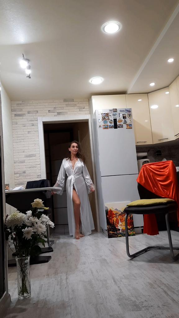 🤍БЕЛЫЙ ХАЛАТИК🤍 Смотрится очень привлекательно, дома тоже нужно быть красотками!😍😍😍 🎗По размеру подошёл отлично! На мне XL, сел просторно и мне в нём очень комфортно👌 Мои параметры 94-58-95. Длина на рост 167 в пол! ✔К пошиву претензий нет, всё аккуратно, швы ровные, без перекосов, нитки не обрезала👌 ✔Выполнен из лёгкого полупрозрачного материала, состав 85% полиэстер, 15% спандекс. Ткань не тянется, к телу не липнет, легко погладилась) Низ рукавов и область декольте выполнены из приятного и мягкого кружева) Халатик завязывается на атласный пояс) В комплекте как всегда стринги - крошечный кусочек ткани в виде треугольника на резинках) ✔По моей ссылке товар представлен в трёх цветах, размеры в наличии M-3XL 🛬Доставка в Беларусь🇧🇾 25 дней, товар был доставлен в сборной посылке с полным отслеживанием👌 ✨Красивый эротичный халатик, мне понравился!🌟🌟🌟🌟🌟 Очень рекомендую присмотреться!😉💯 🌞Будьте красивыми!🦋🦋🦋