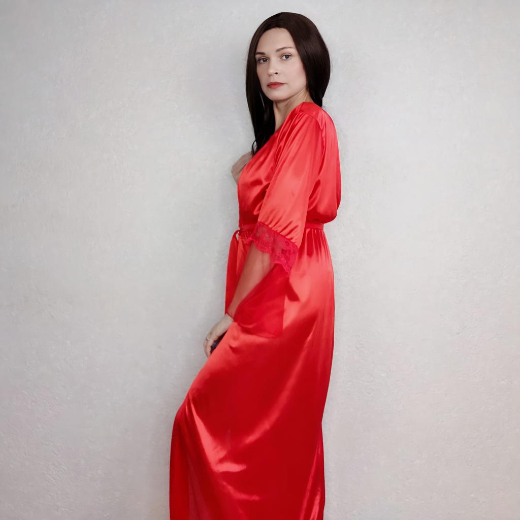 Женский шелковый халат с кружевом