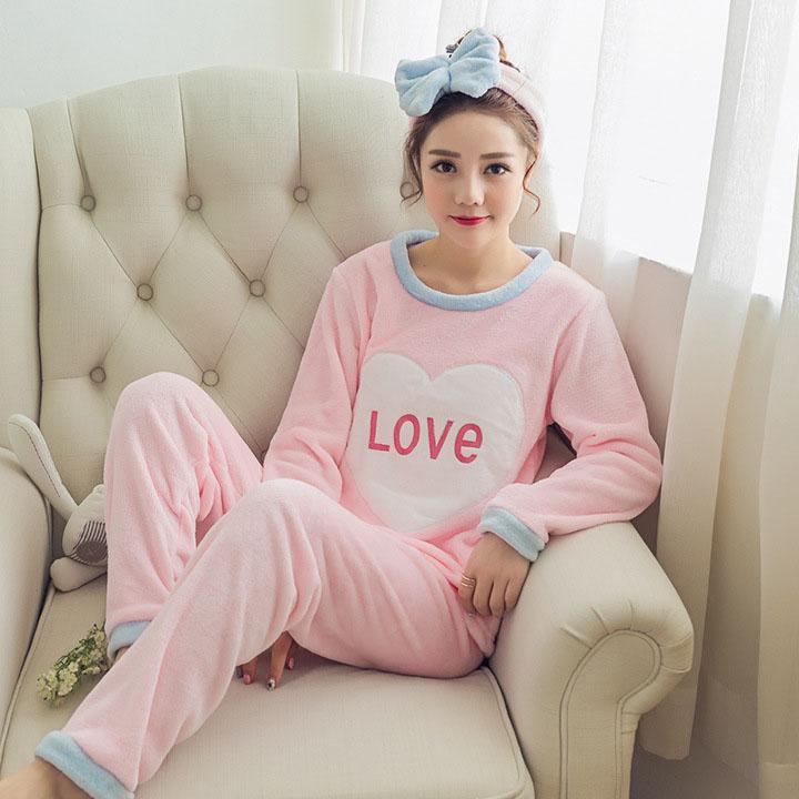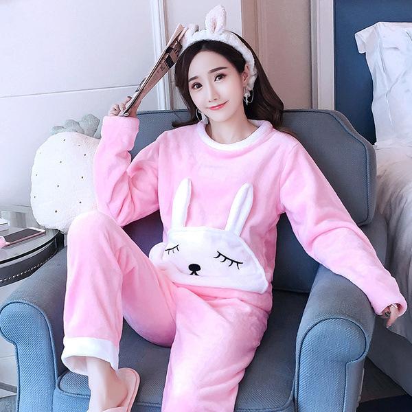 1 комплект, весенне-осенние женские милые пижамы, мягкая плюшевая теплая ночная рубашка, топ + нижние штаны, женские теплые фланелевые пижамы