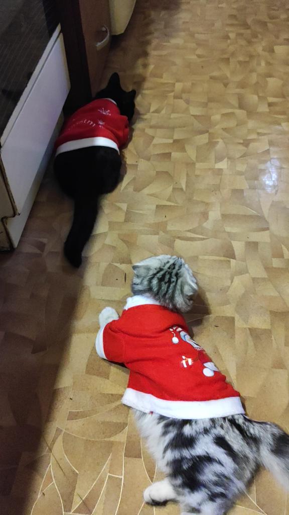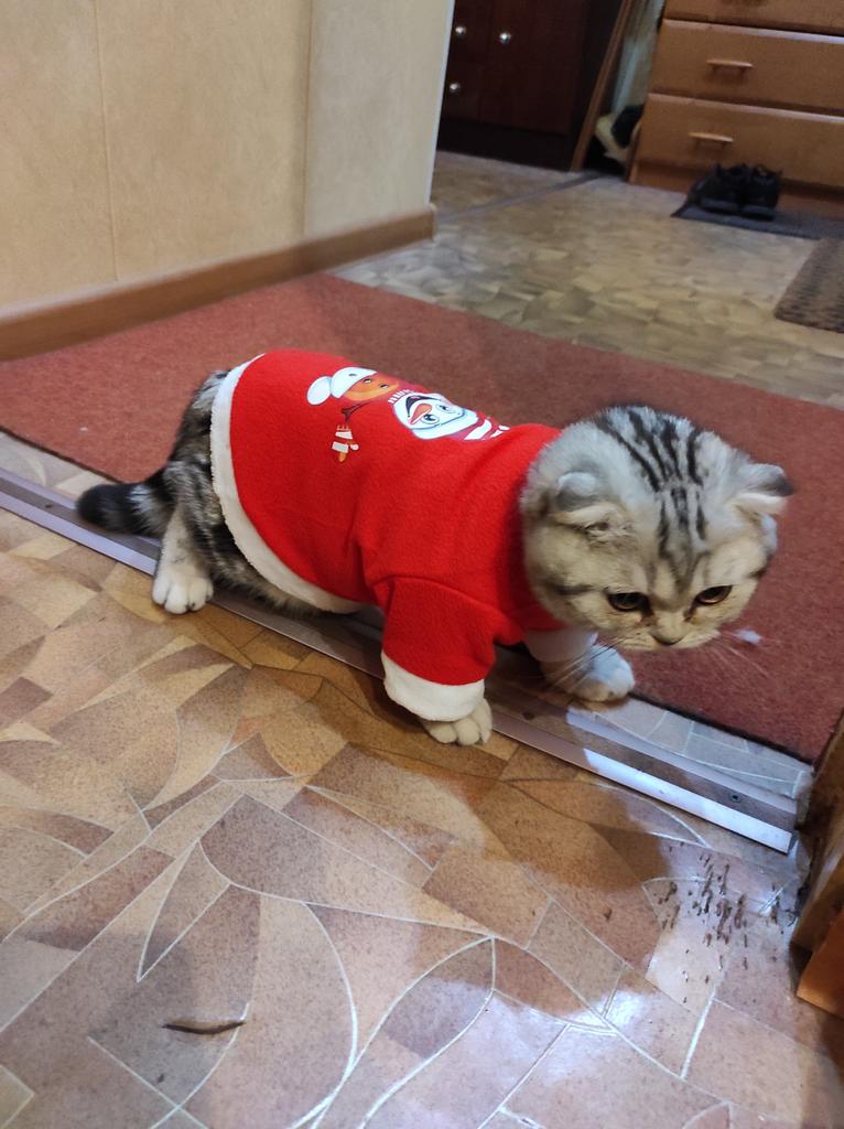 В посылке было 4 заказа, очень удобно и приятно. С момента заказа до прибытия прошло меньше месяца. Обе новогодние кофточки размер S, но одна другой меньше. В принципе, это нам даже лучше, разница у котят в один месяц, каждому подошла👍😉 К празднованию Нового Года готовы прям сейчас🤗!!! Качество отличное, товар рекомендую, спасибо Джуму!!!