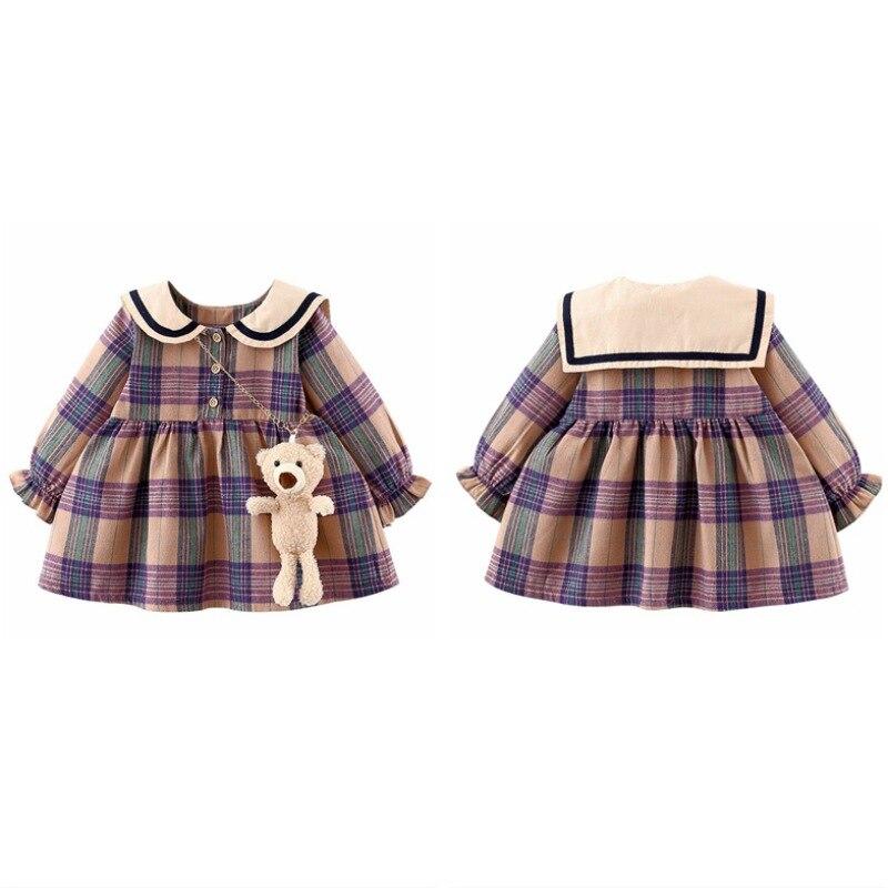 Осенние платья принцессы для девочек, детское вечернее платье в темно-синюю клетку с длинными рукавами для маленьких девочек