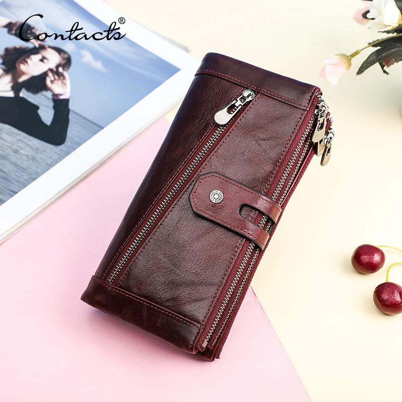 CONTACT'S женский удлинённый бумажник из натуральной кожи с отделениями для пластиковых карт, монет и мобильного телефона — купить товар онлайн с бесплатной доставкой по всему миру!