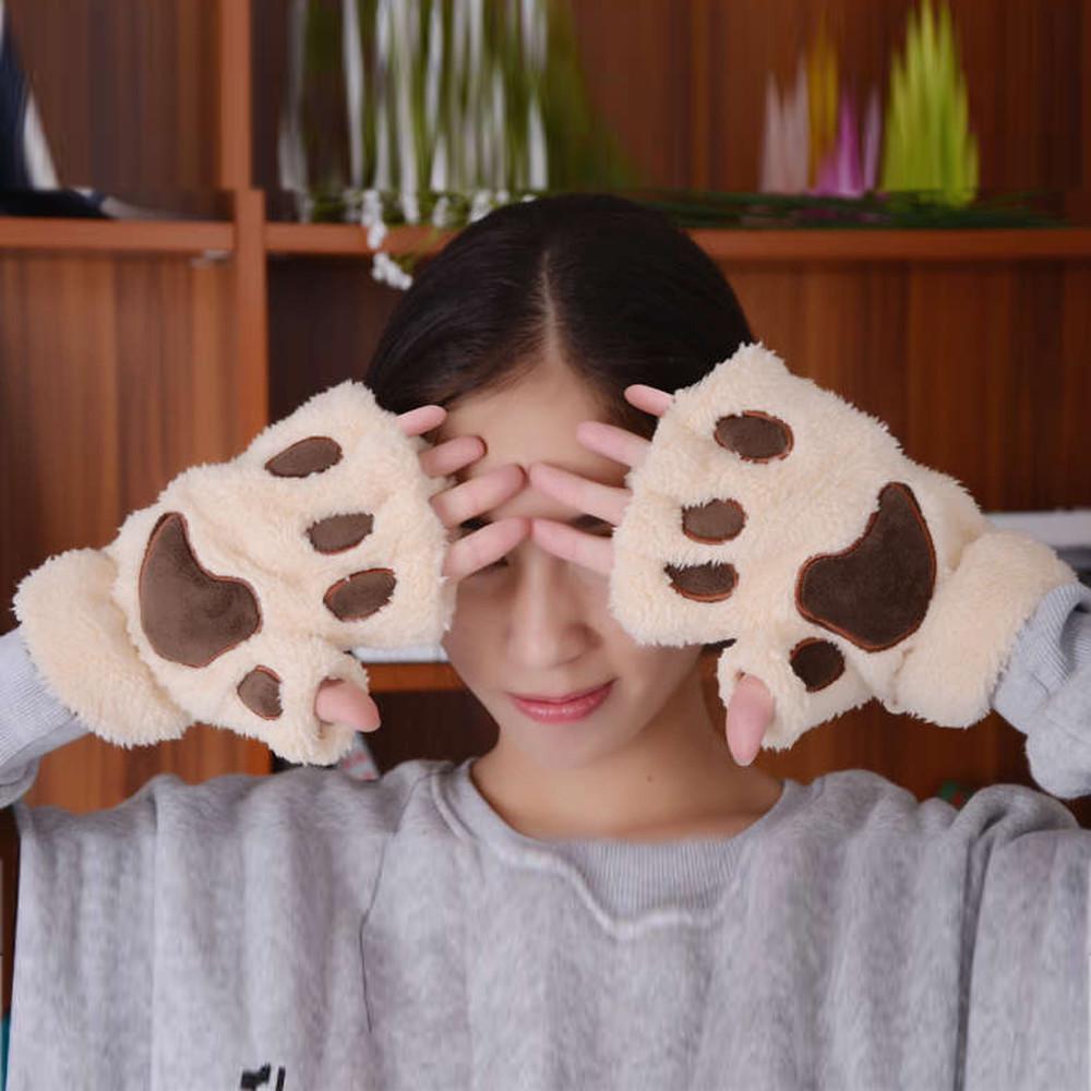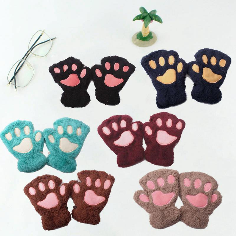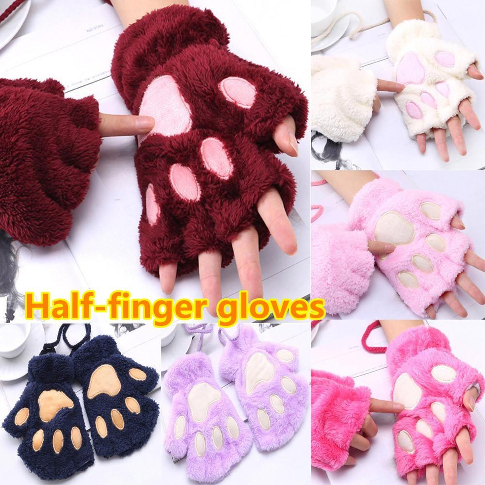 Женщины Девушки Прекрасная Кошачья Лапа Коготь Толстые Половина Без Пальцев Перчатки Пушистые Плюшевые Варежки