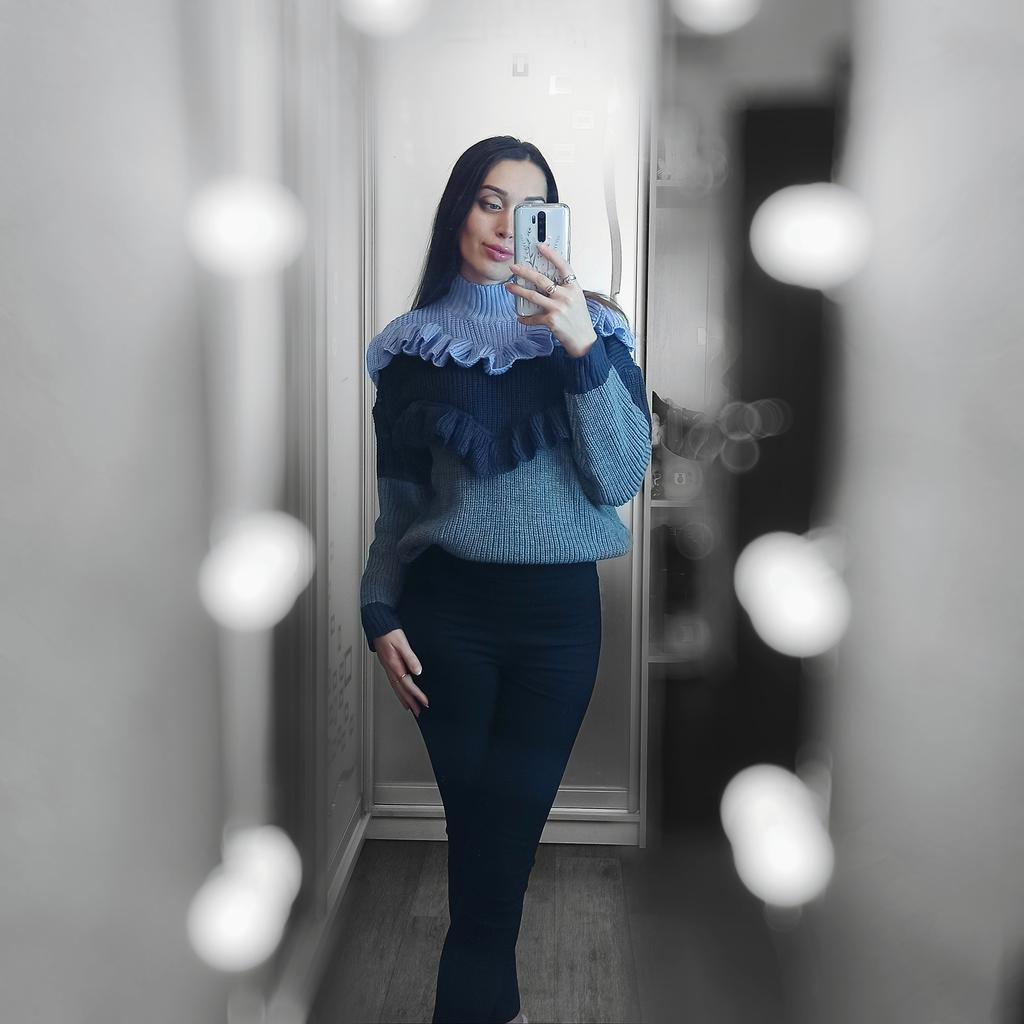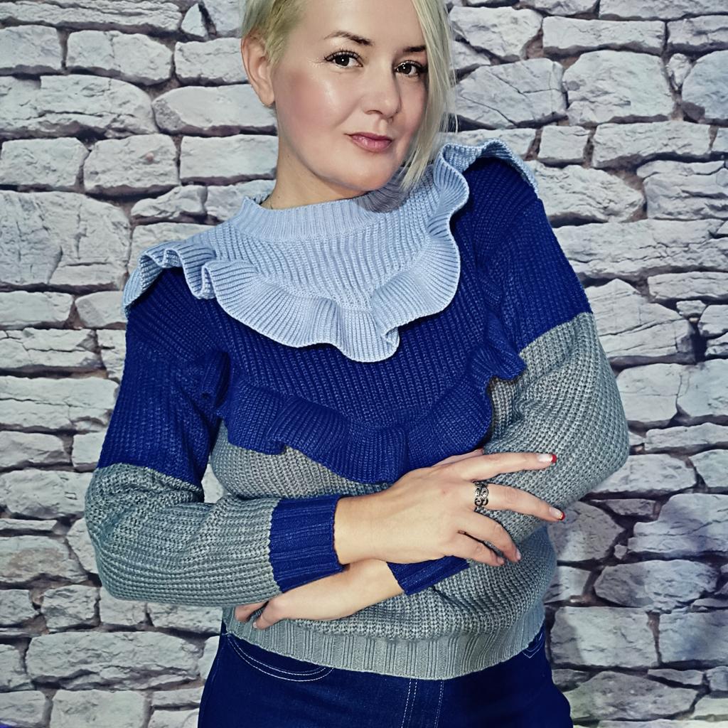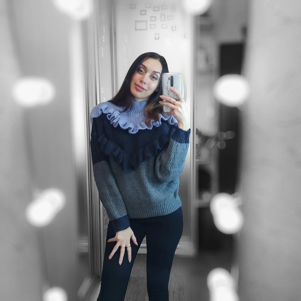 Осколки неба☺️ + авторские видео от меня Привет! Как я рада, что пришёл этот джемпер именно таким, как я себе его не представляла 😅 Честно думала, что он будет объёмным и волны будут огромными, но все получилось в действительности очень красиво и органично. От фото продавца джемпер чуть отличается один из цветов чуть темнее на фото продавца, то что я получила выглядит более гармонично и правильно. Ткань: Акрил. Нитка плотная не пушистая, но вязка воздушная и лёгкая. Назвать джемпер супер тёплым я назвать не могу, но и холодным тоже нет. Полотно тянется. Дизайн: Три цвета на переходах которых есть не большие волны. Они не большие и не нужного объёма не придает, смотрятся аккуратно и придают изюминку этому джемперу. Сезон: Весна, осень, зима Минусы: Если посмотреть на джемпер в другом цвете он выглядит чуть иначе чем в моем цвете. Качество: У меня претензий нет. Всё ровно и аккуратно. Резмер: На мне единый размер Мои параметры рост 172 см 97 /76 /106 см Детальные замеры изделия : Длина 59 см ОГ от 110 до 138 см Длина рукава 51 см Плечи 54 см Резюмирую: Это что то очень красивое и необычное с точки зрения дизайна вещь. Смотрится интерестно и нарядно. Я однозначно рекомендую. Берём! Я не прощаюсь, Мой инстаграм #Miss_Kuksik