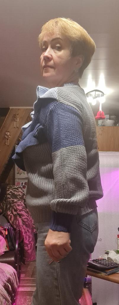 Очень необычный свитерок🥰но понравился на 100% Отмечу, что свитерок идёт в едином размере👌 Смотрится круто. До 50 хорошо сядет) Доставка до Саратова 20 дней. Трек отслеживался полностью ❤️ У продавца в двух цветах. 🎀Мои параметры🎀 📏Рост 161 📏ОГ 88 📏Объем под грудью 73см 📏ОТ 67 📏ОБ 96см 📏Вес 56кг 📏Ширина плеч 42 см 📏Длина руки до кисти 60 см 📏Охват бедра 54см Отлично сел. В нем очень уютно. Рюшки объёмные, если у вас узкие плечи, такой фасон исправит ситуацию. Материал очень приятный, вязка плотная. Очень сильно электролизуется. Антистатик в помощь. На прохладную погоду вещь просто супер. Качество отличное, швы ровненькие, нитки нигде не торчат. Сочитать можно с чем угодно. И с юбками, и с брюками, и с леггинсами, и с джинсами 👍вещь универсальная) повторюсь ещё раз😛 очень теплый🔥 Девчонки, рекомендую однозначно ❤️ Заказывайте 🔥👍❤️ ⭐⭐⭐⭐⭐ Пс. Ранее брала у этого продавца похожий. Только бежевый. Ношу с удовольствием.