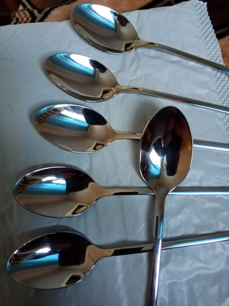 Получила сегодня на почте посылку. Ложки хорошие, нержавейка. Заказываю не первый раз. И себе, потом коллеги просили. Ложки блестят, аж глаза слепят) только одна не так отлита( испортила настроение. За это сняла сразу две звезды, а потом передумала и решила одну снять. Продавец мог и не заметить этот брак, каждая ложечка в своём целофане, затем в зип - пакете и в пупырке. Не темнеют. Заказывайте. Не пожалеете, ложечки хорошие. И на презент потянут)