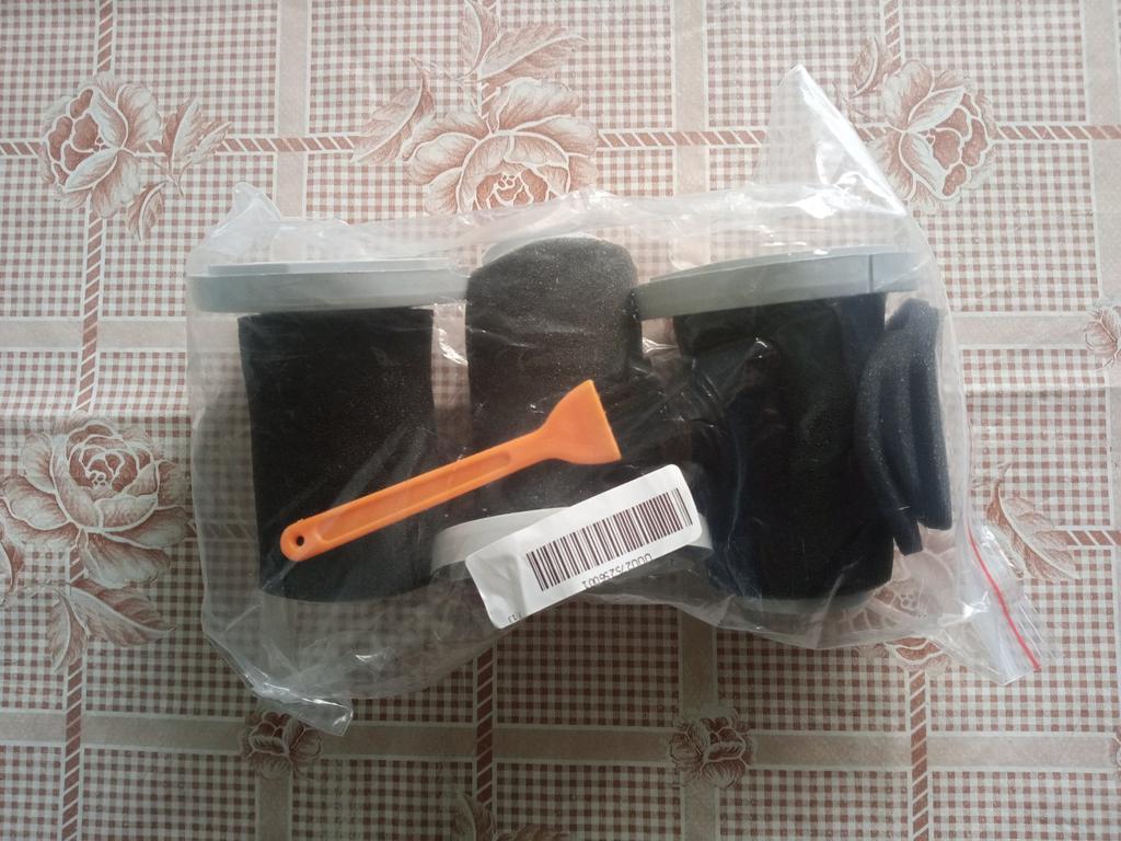 Упаковка желает лучшего, два фильтра из трёх напоминают Пизанскую башню, один сильно, скажется на качестве. Внешний фильтр паралоновый, в оригинале специальная ткань , на фото видно, комплектация в норме, три основных, три маленьких фильтра и щёточка для очистки.Брала за 473р. Пылесос у меня DERMA CYCLONE FILTER, подошло идеально.