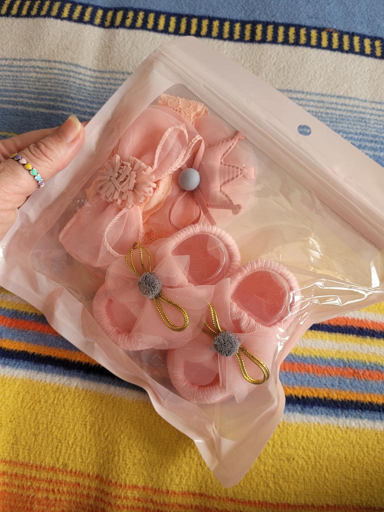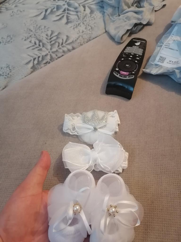 💖🍭💝 Наборчик для малыша. 💝🍭💖 Заказ 11.03. - 11.04. Покупала за 215 руб. 🔹️Внешне всё соответствует. Пришел в запаянном пакете, не вскрывала, поедет на подарок, надеюсь подойдет🙏. 🔹️В наборе 2 повязочки на голову и носочки-пинетки. Носочки дополнительно надеты на форму. + маленькое видео. 🔹️🔹️🔹️Спасибо.💝💖💝💖💝👍