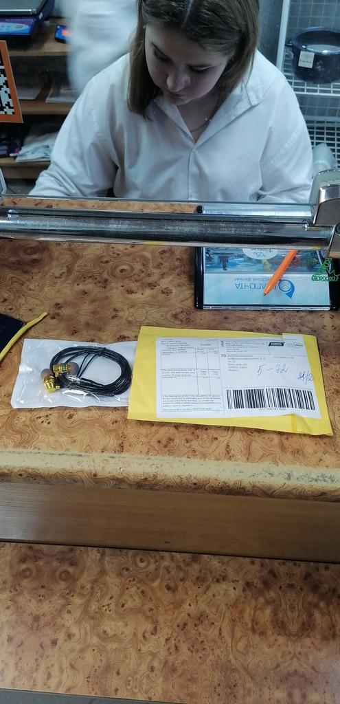 Посылку получила, есть нюансы. 1. Посылка помятая и потертая маленько это видно на фото. 2. Пришли вот таком мешочке на фото видно и там вкладыши видно. В комплекте идут запасные вкладыши. 3. Сами наушники такого же цвета как и заказывали, ток есть проблема кнопка паузы и переключения сломана вылетела из своего гнезда. 4. Наушники работают тянут на 4+ , лёгкий басс есть. 5. Надеюсь что в следующий раз джоу будут бдительны когда будут отправлять заказ.