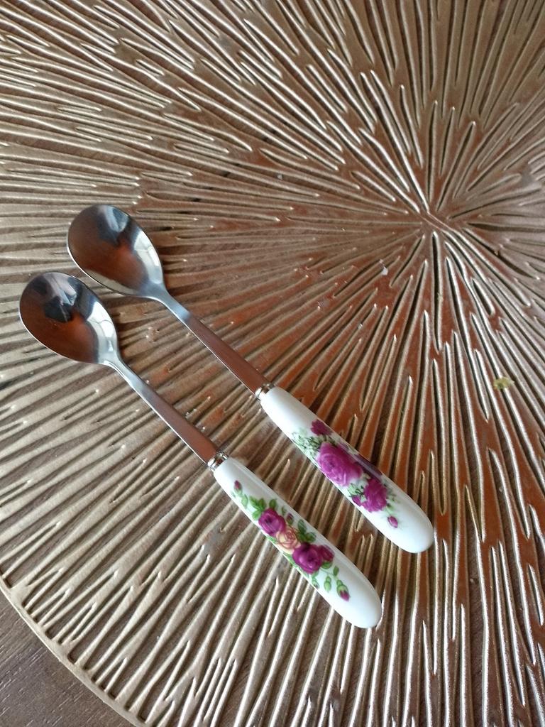 Ложки получила, товар не плохой, ложки скорее кофейные, прислали все с одинаковым рисунком, ручка керамическая, металл нержавейка, рядом положила чайную ложку для сравнения, а то часто отзывы пишут без размеров, а это важно, фото прилагаю