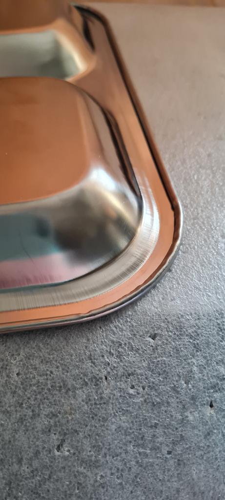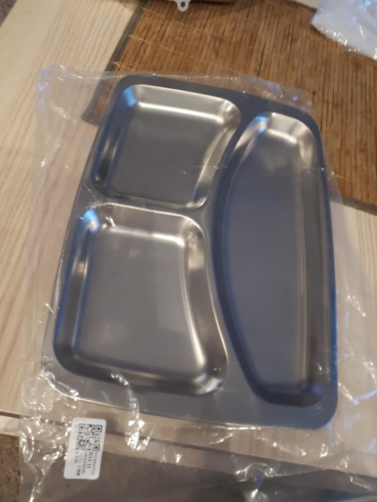 Понятно, что на вкус и цвет товарищей нет, но мне эта " тарелка" нравится. Долго хотела себе что- нибудь похожее. Удобно, много не положишь, а соответственно не переешь. Выполнено из нержавеющей стали, края хорошо "закручены"- не поранишься.