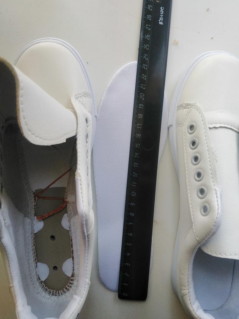 Прислали не тот размер Выбирала по размерной сетке - стопа 24,3 см (заказала 39 размер 24,1-24,4 см), а по факту пришли 23,5 см У сожалению, малы- на 2 размера меньше. А так неплохие кеды - верх везде прошит, довольно лёгкие, подошва хорошо гнется