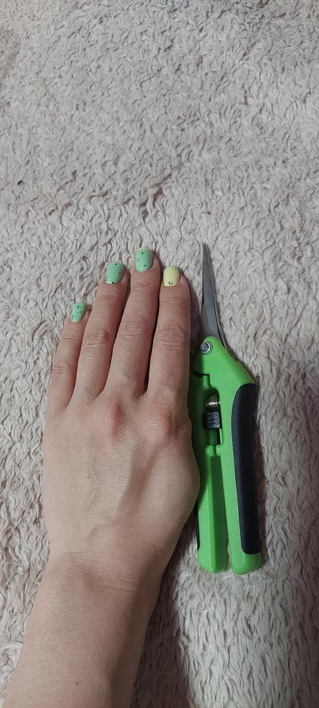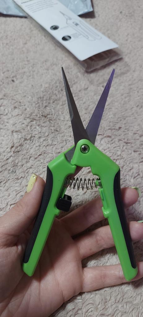 У меня уже есть секатор с изогнутыми лезвиями, сейчас приобрела с прямыми. Очень полезная вещь в домашнем цветоводстве. В саду можно подрезать только что-то очень тонкое. Например, лаванду после цветения) Для веточек не рекомендую. Длина лезвий всего 5 см. Очень острые. Ухаживать тоже очень просто-протереть ватным диском, смоченным спиртом. Никаких следов не остаётся) На первых двух фото мой "старый" секатор, которым я уже активно пользуюсь больше, чем полгода. На последнем фото-моё новое приобретение. Уже испробовала, очень довольна. Спасибо, огромное, за качественный товар.